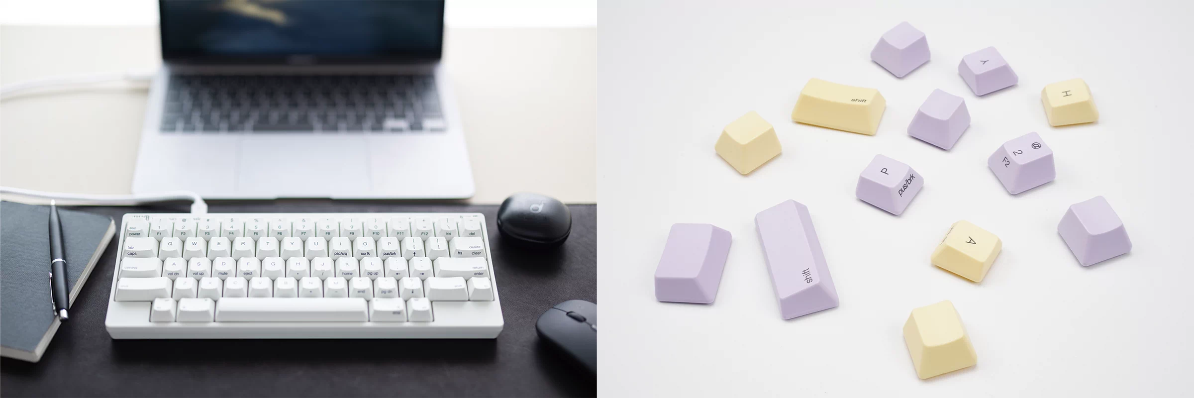また、「HHKBカラーキートッププロジェクト第二弾~第四弾」で発売した数量限定のキートップセット(山葵・蒲公英・藤)も追加採用(注2)されました。全キーを付け替えて鮮やかにするのはもちろん、一部だけ付け替えてアクセントにするなど、HHKBのカスタマイズをお楽しみください。