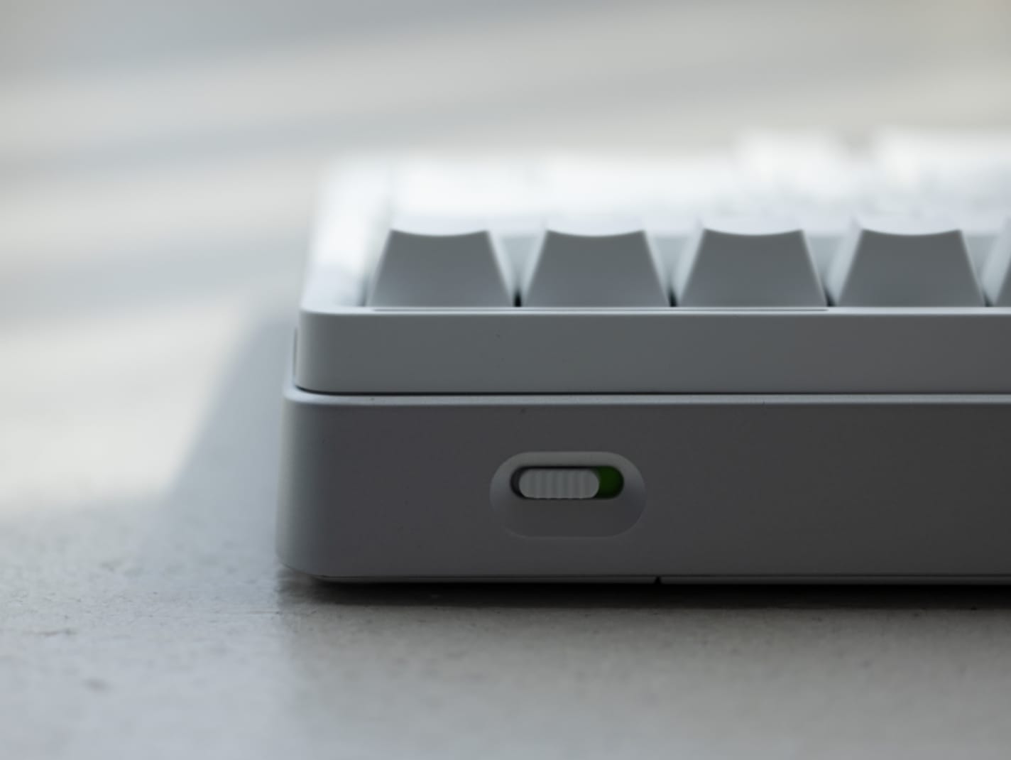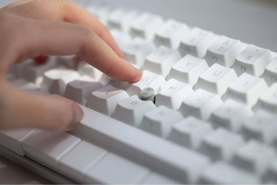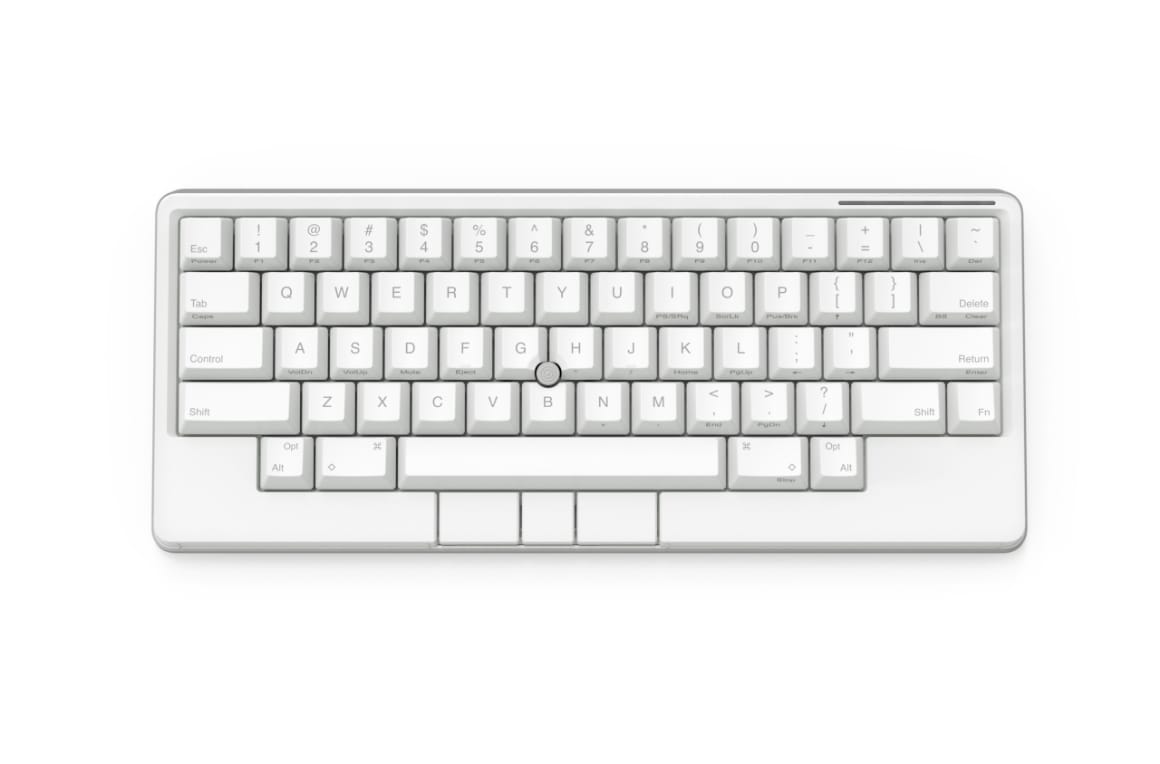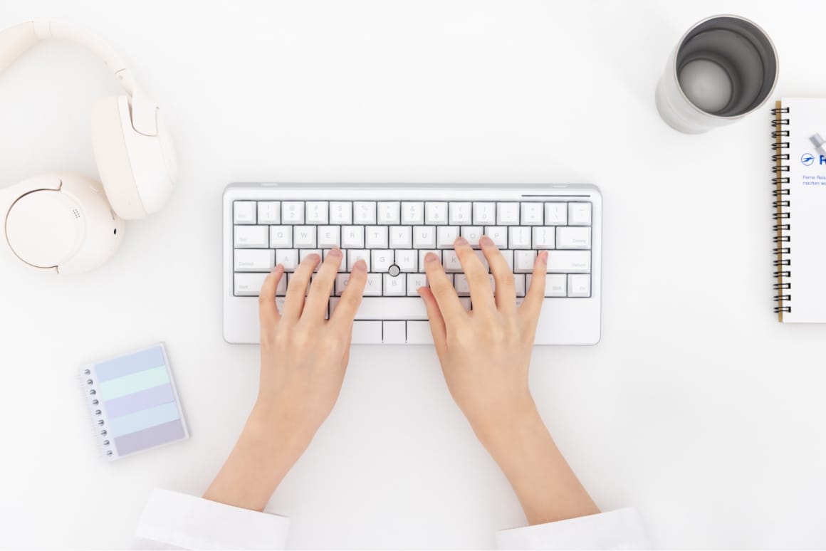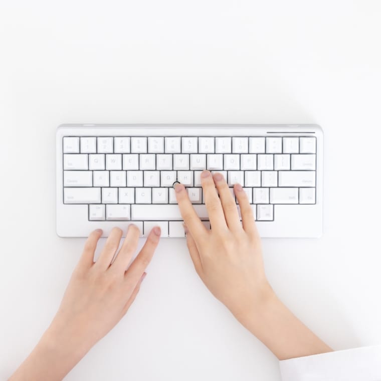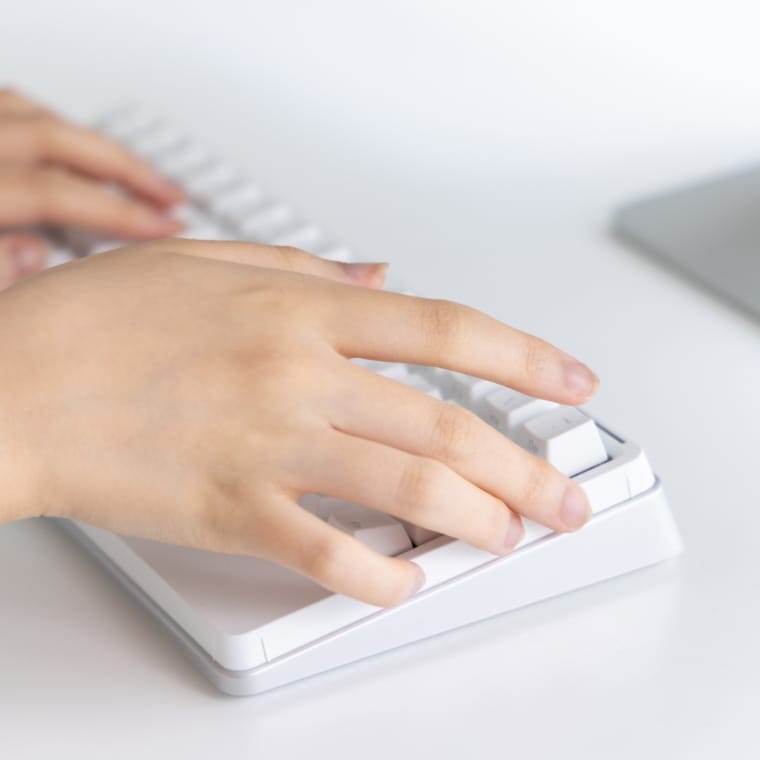 新雪のように白いキートップに、クールグレーの中央印字。視覚的ノイズを排除したカラーリングとデザインが、クリエイティブな作業への没入を可能にします。