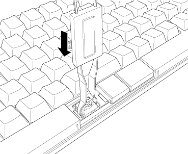 引き抜き工具のキートップ引き抜き用ワイヤーを、キートップの隙間に入れます。